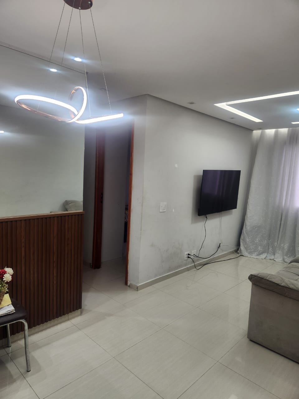 Apartamento composto por 02 dormitórios, c/ armarios planejados, sala com piso porcelanato e espelho, copa, cozinha c/ planejados, lavanderia, 01 vaga garagem. Àrea de lazer com portaria 24HS, quadra, salão de festa com área de churrasqueira, parquinho.